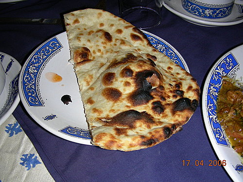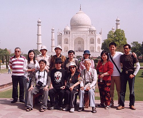 ,這座以白色大理石築成的陵墓位在朱木納河畔的亞格拉,是蒙兀兒王朝沙加罕為紀念在1631年死去的王妃泰塔姿.瑪哈所建。整個工程在1632年開始,歷時22年始完成,是世界七大奇景之ㄧ。(我覺得這是一個忌妒心很重的女人叫一個白痴男人建的敗家陵墓),參觀後回飯店吃午餐,吃著咖哩雞咖哩羊