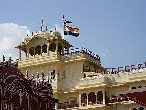 ,休息一會繼續驅車參觀一個退位國王將他的宮殿捐出來改建成的城市宮殿博物館,聽導遊說國王還住在後面的小小宮殿裡面,後前往附近著名的風之宮殿拍照,然後順便逛當地最大的市場,在印度買東西真的要殺價,原本一隻US$5元的大象我搖頭後變2隻5元,再搖頭又變成3隻5元,最後靠團友的幫忙殺價到一盒12隻2美元(晚上回飯店amy說他幫我付了小費所以拿兩隻去抵押